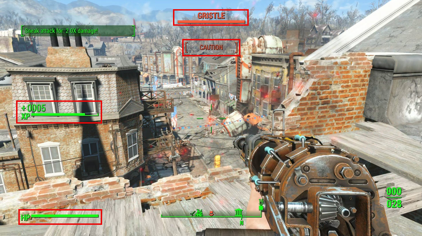 • The definitive source for tracking hits and damage is your HP total in the Pip-Boy and must be visible. Small amounts of damage may not appear on the HUD bar but still count if they reduce HP in the Pip-Boy.